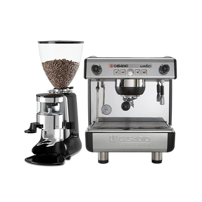 Combo đến từ thương hiệu Casadio – nổi tiếng trong ngành máy pha cà phê chuyên nghiệp.